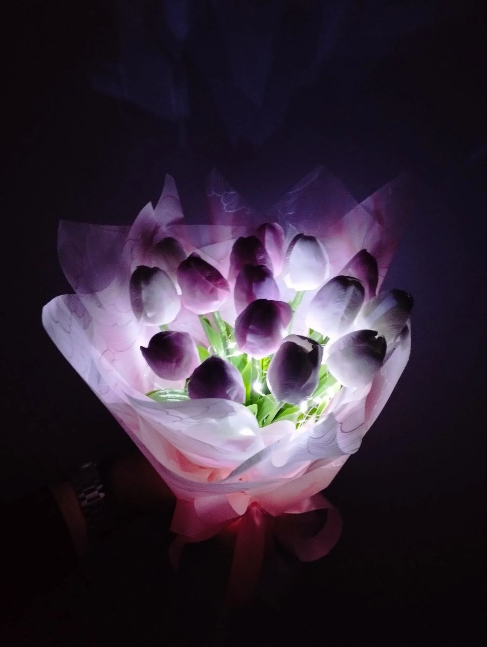 Светящийся букет из мыльных роз и бабочек