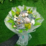 В составе: Чупа чупс 1 капсула Конфеты адель с вишней и кокосом 2 капсулы Кустовая мыльная роза с зеленью, хлопком и пластиковыми бабочками.